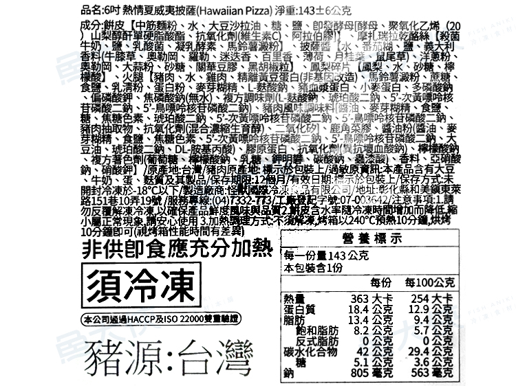 成分:法國進口摩札瑞拉起司、火腿、鳳梨
