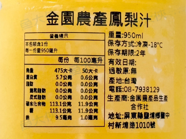 營養標示上面的糖是天然水果本身就會含有的,並非事後加入的,請知悉。