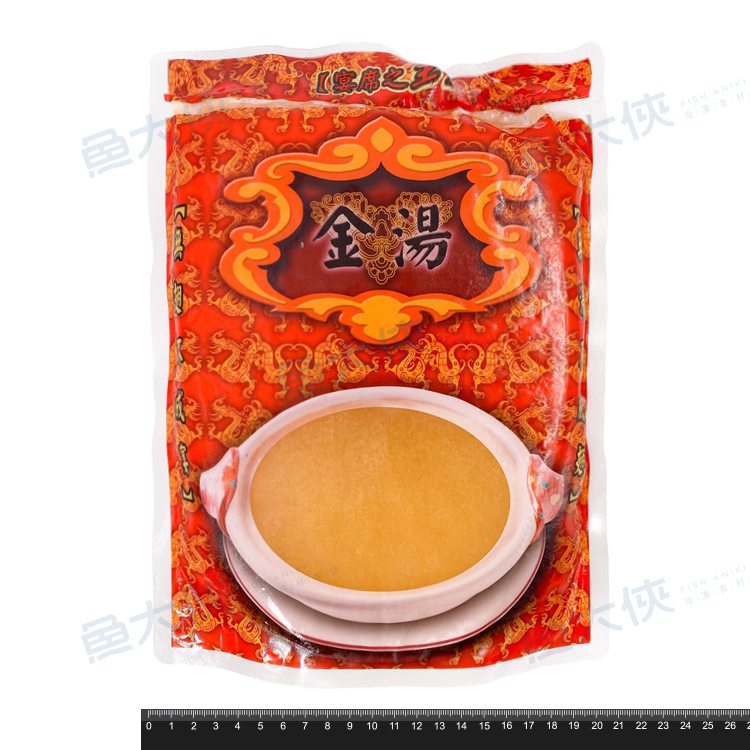 由雞肉豬肉燉煮而成的魚翅用高湯,僅有湯底內無魚翅