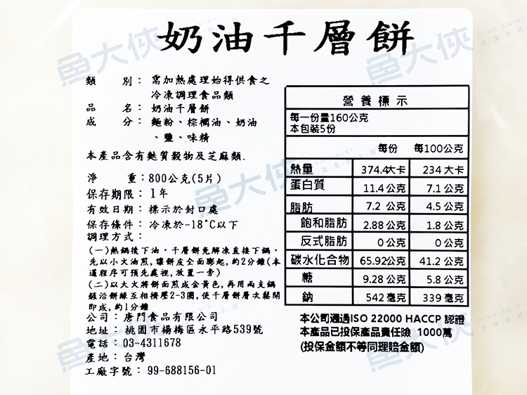 唐門老爹-奶油千層餅(5片/800g/包)-1G1B【魚大俠】FF896