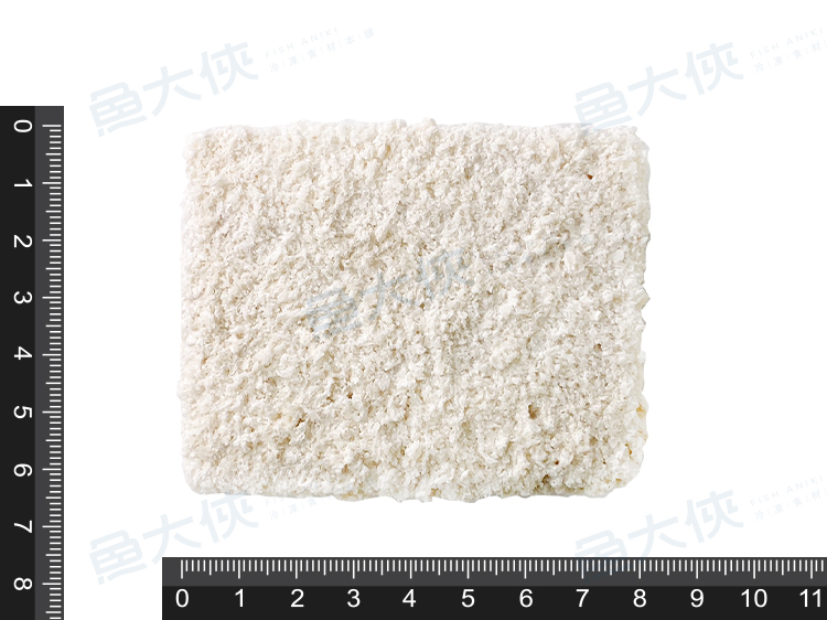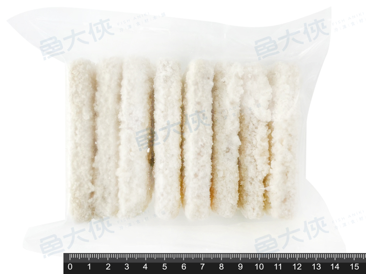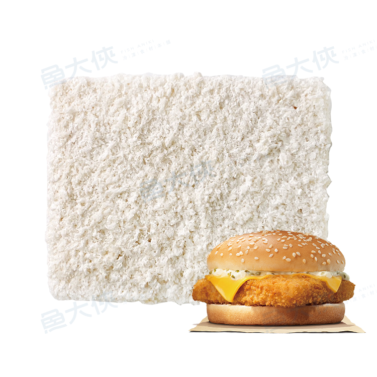 而是將魚肉凍成方形後再裁切成片狀後裹粉,