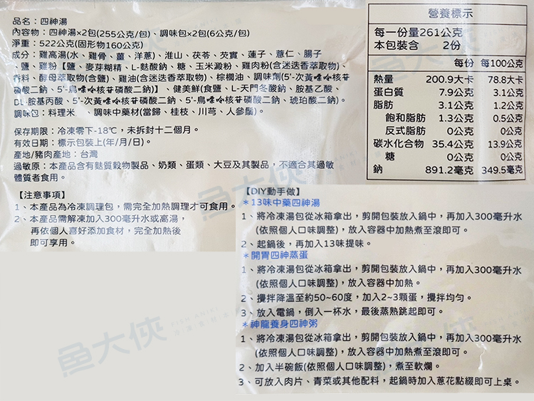 十三味中藥四神湯(2入/510g/包)#料多-2J3B【魚大俠】FF1070