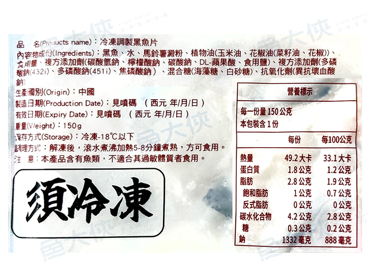 去刺黑魚滑/烏鯉魚片(150g/包)#酸菜魚專用魚肉-2H1A【魚大俠】FH389