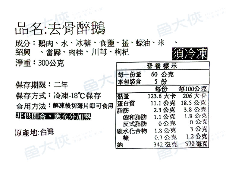 去骨醉鵝肉(300g/包)-1E7B【魚大俠】FF1111