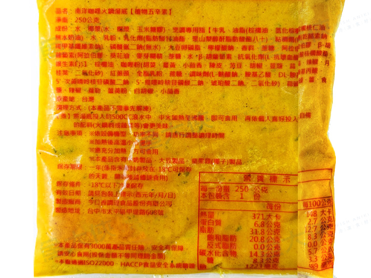 金品急食鮮-1南洋咖哩鍋-湯底包(250g/包)-2I4A【魚大俠】FF1112
