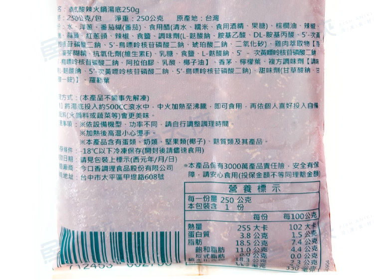 金品急食鮮-4泰式酸辣鍋-湯底包(250g/包)#微辣-2I4A【魚大俠】FF1115